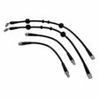 This 034Motorsport Stainless Steel Braided Brake Line Kit features teflon linings, stainless steel braided reinforcement and a protective black PVC covering. All lines are DOT certified.