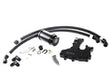 This kit uses the Integrated Engineering billet recirculating catch can, which features our state-of-the-art baffle system to catch the oil mist and not let it pass back into the turbo inlet. This flawless catch can is fully serviceable, easily disassembling if needed. Draining the catch can is simple with the use of the included T handle drain valve, no tools necessary. This beautiful piece is finished with a bright black anodize finish, which maintains a stealthy appearance while looking great in your engine bay.