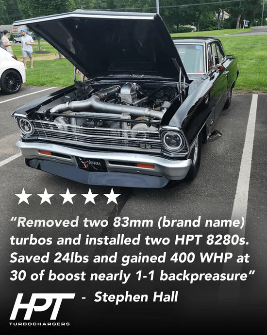 The F3 8280 Turbocharger is equipped with HPT's Quick Spool Technology, providing high efficiency with minimal lag.