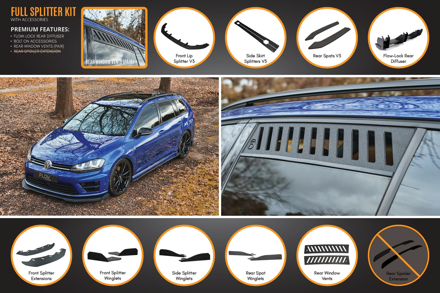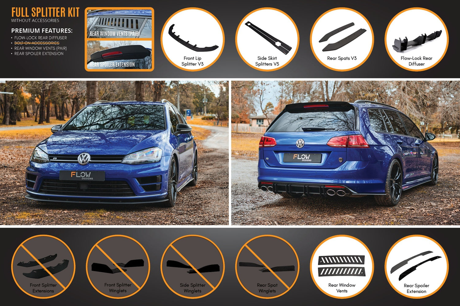 Please note you are receiving a special price when you purchase the MK7 R Wagon complete body kit splitter set.